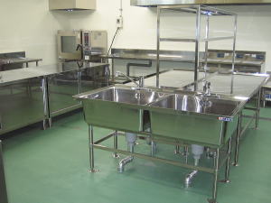 | 災害時の地域の中心的な医療施設と なるため耐震固定などはしっかりと してあります。ドライ仕様の厨房です。 かつては長寿日本一の村になったことも ある和良地域の国保医療機関、介護 保健施設としての役割をになっています。 |